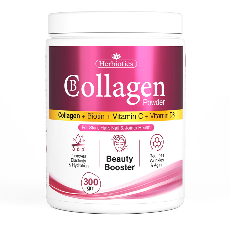 Herbiotics B Collagen Powder is a premium beauty supplement designed to support healthy skin, hair, nails, and joints. Enriched with Collagen, Biotin, Vitamin C, and Vitamin D3, it helps replenish essential nutrients that naturally decline with age.