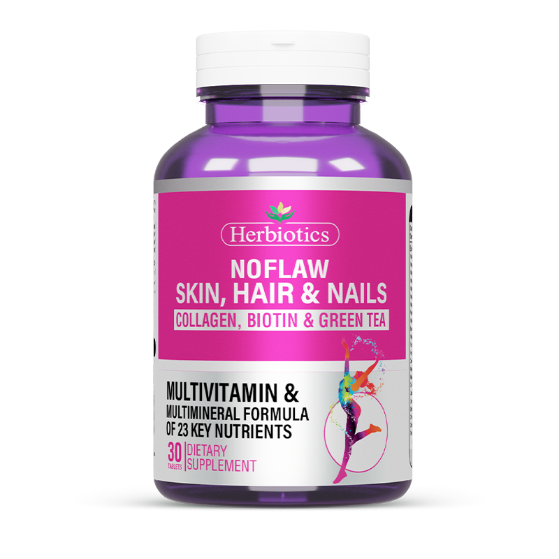 Noflaw is a premium Multivitamin/Multimineral formula that contains all beauty nutrients which are very important to enhance Skin, Hair & Nails Health. Noflaw contains COLLAGEN, BIOTIN, GREEN TEA with 20 other essential nutrients.